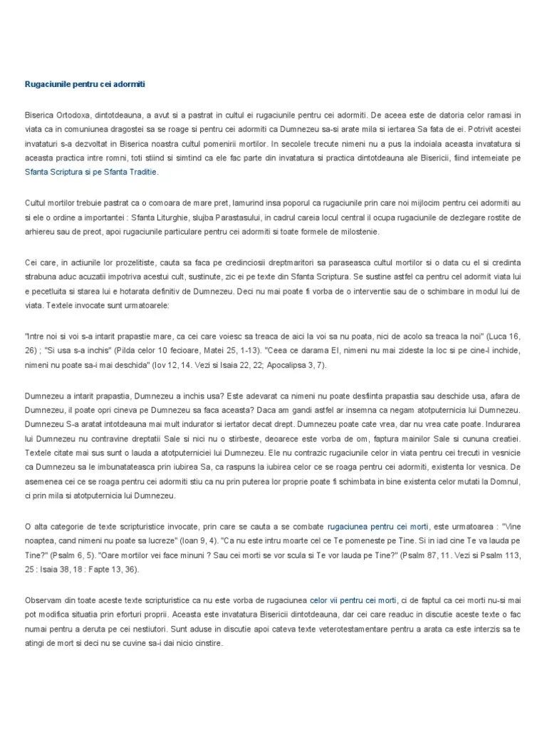 Pomenește, doamne, pe cei ce întru. Rugăciune pentru mântuirea celor adormiți. Rugăciune mare pentru mântuirea celor adormiți! A hrani pe cel flamand, a da apa celui insetat, a imbraca pe cel gol, a cerceta pe cel bolnav, a primi pe cel strain etc. Doamne, odihneste cu dreptii pe adormitii robii tai. Rugăciune pentru mântuirea celor adormiți. Doamne, odihneste cu dreptii pe adormitii robii tai.